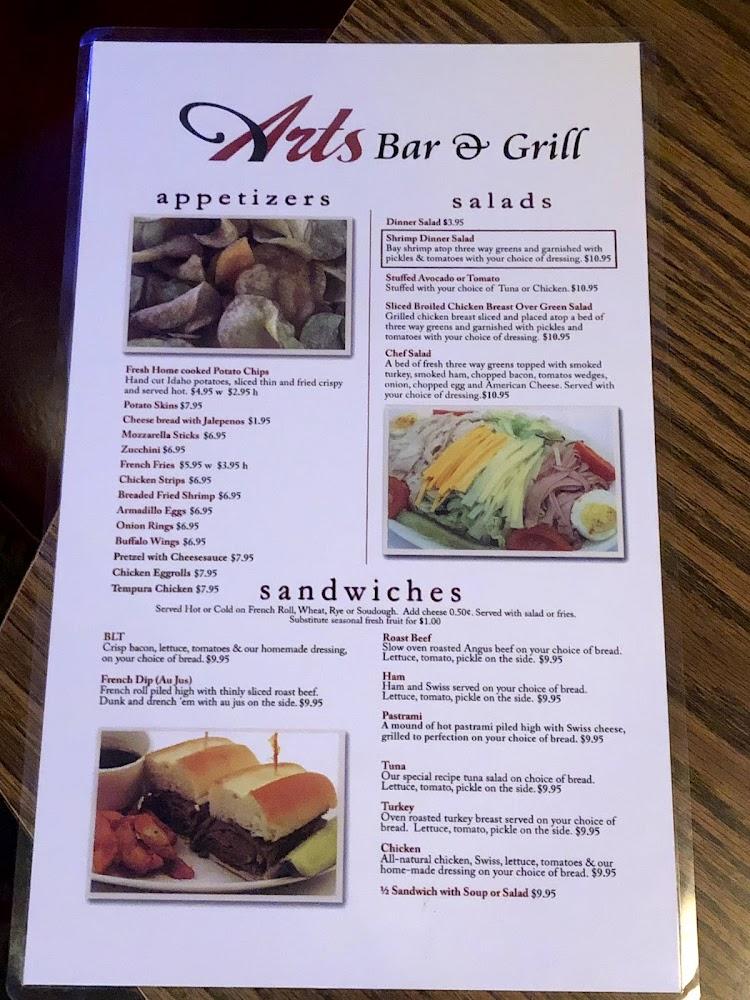 The menu at Art's Bar & Grill offers something for everyone. Start with appetizers like cheese bread or mozzarella sticks. Fresh salads cater to health-conscious diners. Sandwiches, including the classic French dip, showcase hearty flavors. For breakfast lovers, options like avocado mash and omelets delight many. Popular burgers create savory satisfaction as well. Premium steaks provide a delicious treat, particularly on special nights. Seafood selections, including lobster and swordfish, enhance the menu. The extensive beer and cocktail list invites experimentation and delight. This variety makes dining here an adventure.
